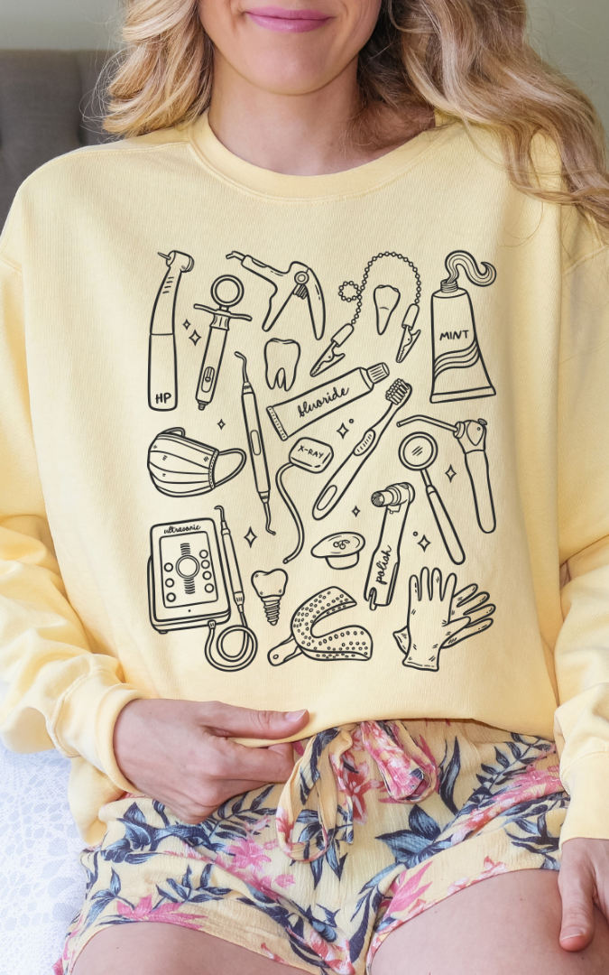 Represent the dental crew doodle line.