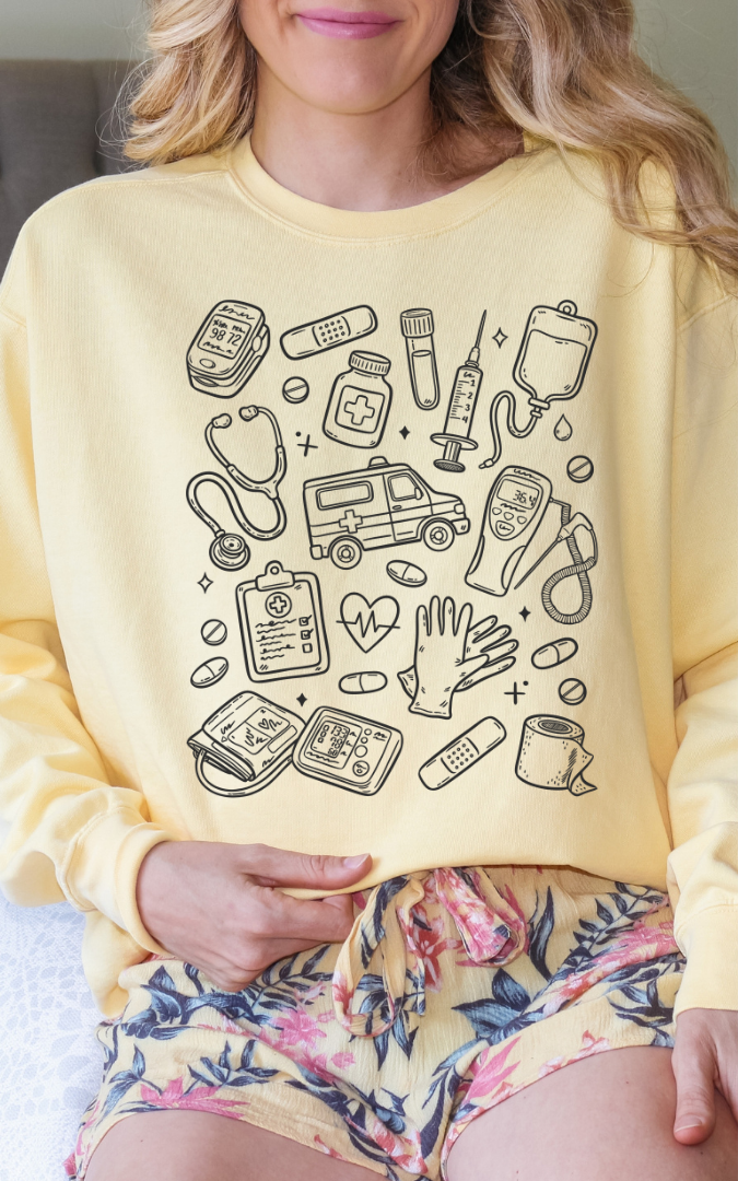 Represent the medical crew doodle line.